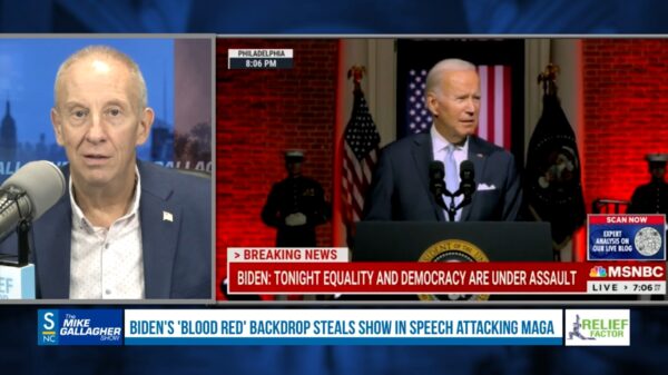 From The Washington Examiner, “Biden’s ‘blood red’ backdrop steals show in speech attacking MAGA”