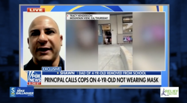 From Fox News, “Outraged dad speaks out after principal called police on maskless 4-year-old son: ‘I’m livid about this’ ”