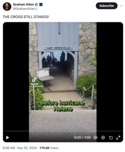 From @GrahamAllen_1, “It’s where my wife and I were married. It’s known as “Pretty Place” and it’s the most beautiful place in the world, as far as I’m concerned. Especially now. The cross still stands.”