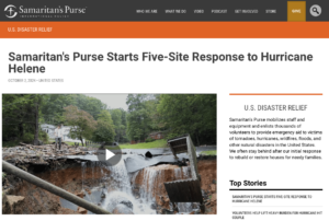 Samaritan’s Purse is responding in five locations across four states after Hurricane Helene devastated parts of the Southeast.