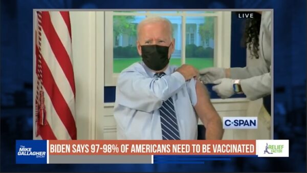A reporter asked Joe Biden how many Americans need to be vaccinated for us to get back to normal. Biden responded by saying he thinks 97-98% of Americans will need to be vaccinated in order for us to get back to normal. Then he added that he isn’t a scientist. Biden said this during his appointment where he received a Covid-19 booster shot.